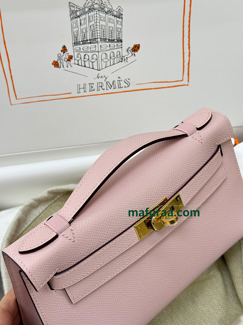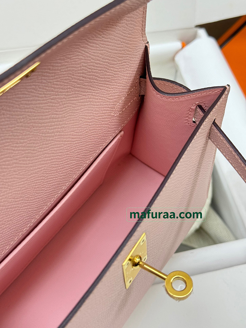 Kelly Pochette 3Q/Rose Sakura Epsom Gold Hardware